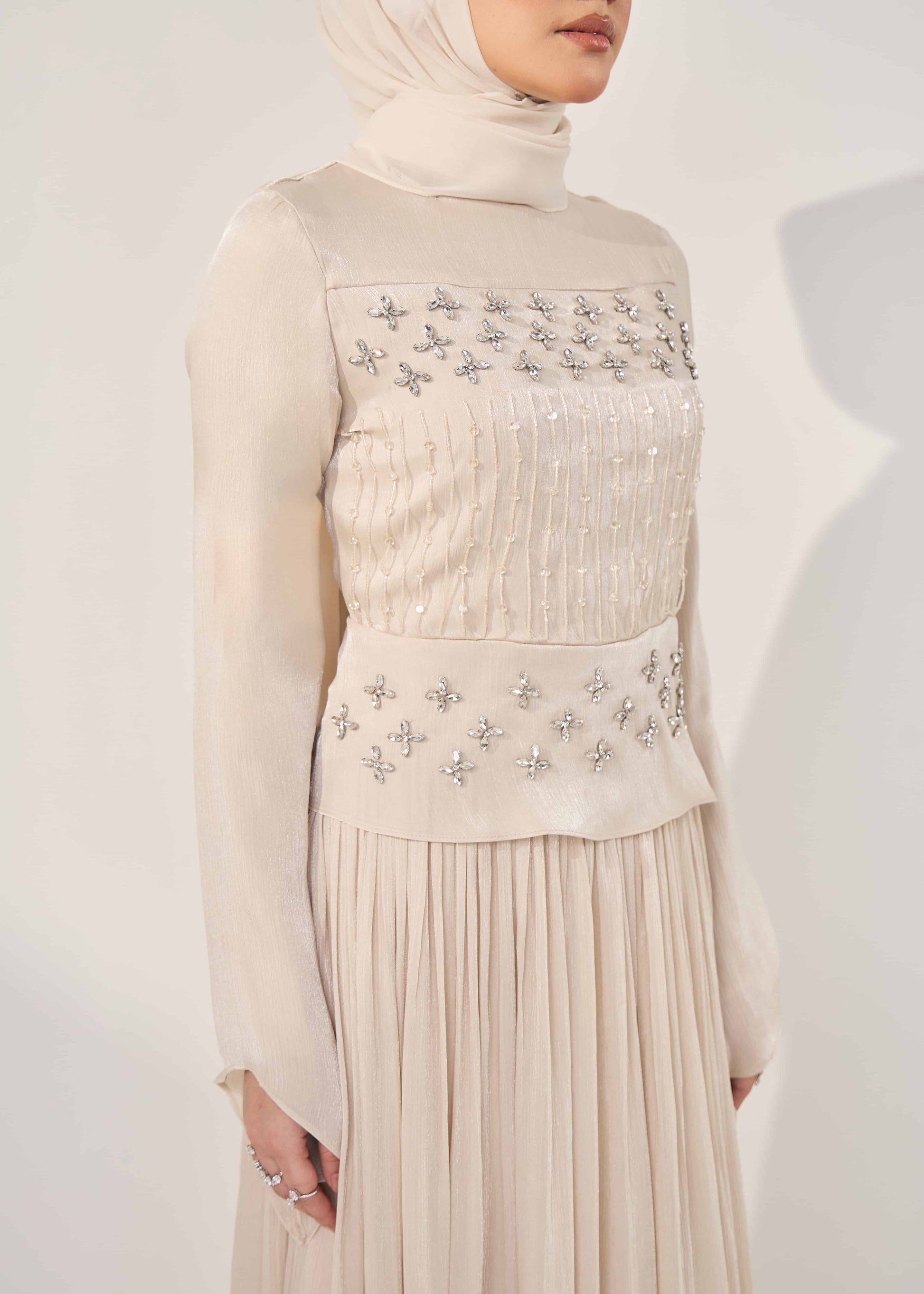 and pleated A-line skirt - Acsessories with ambellished bodice with beaded &